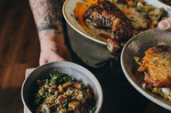 With this, you dive in with your hands and you can use the bread as a utensil to pick up the food.